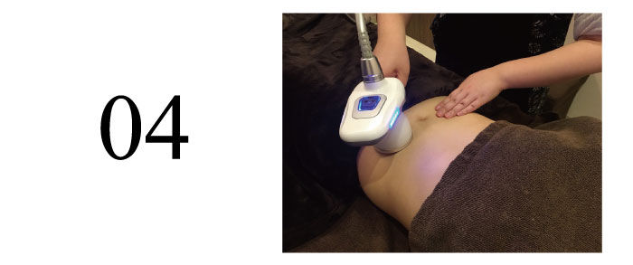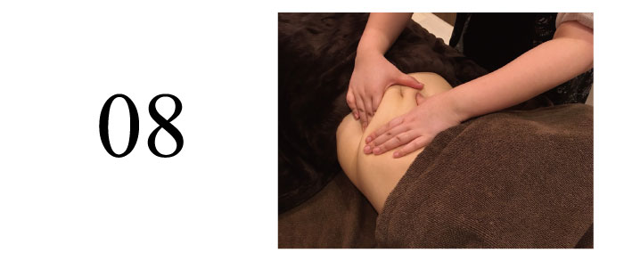 オイルをふきとる前に軽くリンパマッサージをします。 ふきとり後、スタッフが退室しますのでお着換えして頂き、施術終了です。